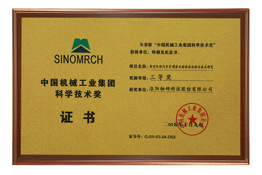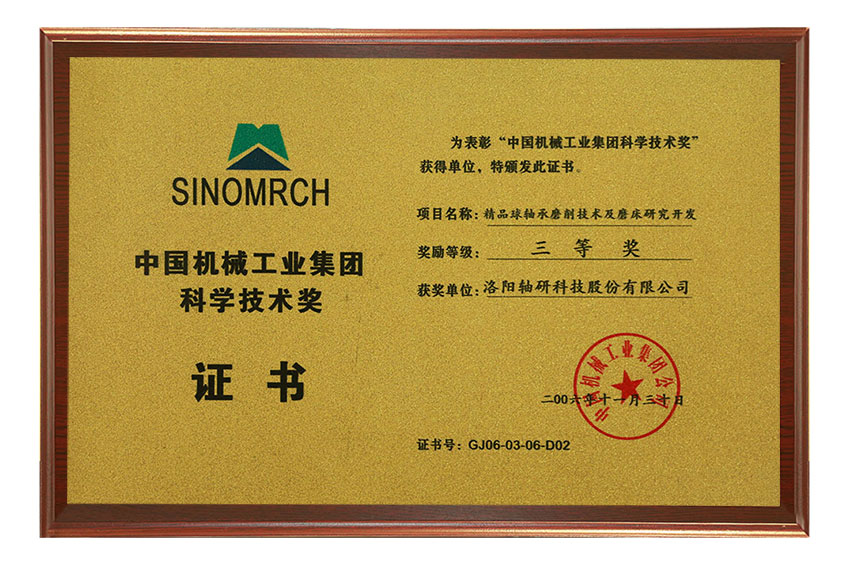 中國機(jī)械工業(yè)集團(tuán)科學(xué)技術(shù)獎(jiǎng)三等獎(jiǎng)