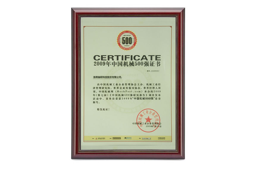 2009年中國機(jī)械500強(qiáng)