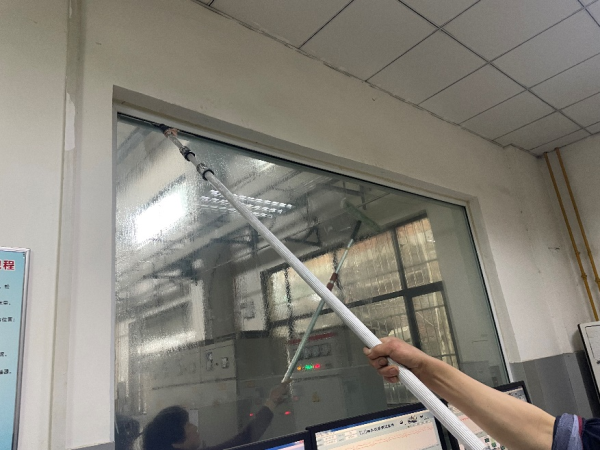 試驗中心監(jiān)控室玻璃附著油霧和灰塵較多,透明度較差,影響值班室人員對試驗現(xiàn)場的觀察。三支部黨員針對這一情況,開展了“清理試驗現(xiàn)場”活動,支部黨員紛紛拿起拖把抹布等清潔工具,對玻璃上的油漬和灰塵進行清潔,清潔后的玻璃透明度明顯提升。同時,試驗室防滑墊由于浸油,防滑效果降低,事業(yè)部黨員對防滑墊進行清洗,去除了其中的油漬,提升了防滑效果。