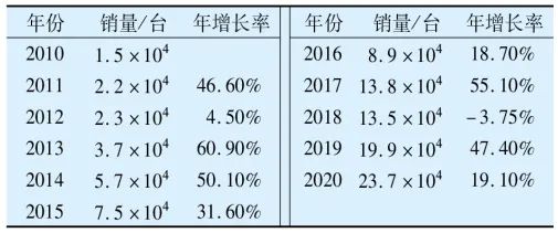 表6 我國(guó)工業(yè)機(jī)器人的銷量