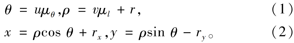 如圖8所示,點(diǎn)P的x,y坐標(biāo)分別表示其距離原點(diǎn)O的水平距離與垂直距離;點(diǎn)P'的坐標(biāo)u,v分別表示點(diǎn)Р在圖8a中相對(duì)圓心(rx,ry)的極角與極徑。