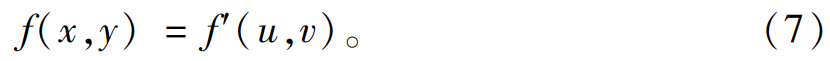 得到Р點(diǎn)與P'點(diǎn)的對(duì)應(yīng)坐標(biāo)后,便可以將P'點(diǎn)的灰度值設(shè)置為Р點(diǎn)最鄰近插值,其關(guān)系式為