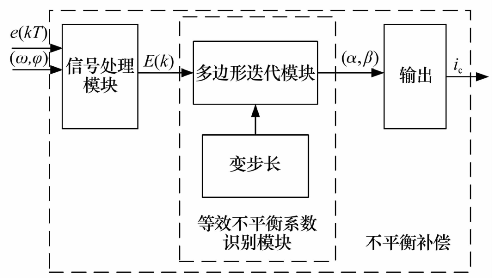 對(duì)于識(shí)別不平衡量后主動(dòng)改變控制量的途徑,文獻(xiàn)[19]設(shè)計(jì)了自適應(yīng)自平衡控制策略,通過(guò)識(shí)別慣性軸與幾何軸的位移和夾角進(jìn)行補(bǔ)償;文獻(xiàn)[20]設(shè)計(jì)了滑模擾動(dòng)觀測(cè)器對(duì)不平衡力和不平衡力矩進(jìn)行觀測(cè)并補(bǔ)償,有效減小了同頻振動(dòng)。