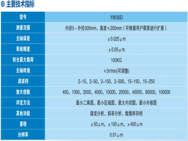 Y90D系列圓度測量儀是以大承重高精度氣浮主軸為基準(zhǔn),采用計算機測量系統(tǒng)的轉(zhuǎn)臺式通用型圓度儀,適用于大型回轉(zhuǎn)體工件的的圓度、波紋度、同軸度等參數(shù)的測量,主要應(yīng)用于大型精密機械制領(lǐng)域。儀器主要由氣浮主軸、精密調(diào)平調(diào)心工作臺、花崗巖臺面和立柱、高精度電感測頭、精密旋轉(zhuǎn)編碼器、驅(qū)動控制電箱、高精度測量電箱、空氣過濾干燥系統(tǒng)以及基于windows XP的專用測量分析軟件組成。
